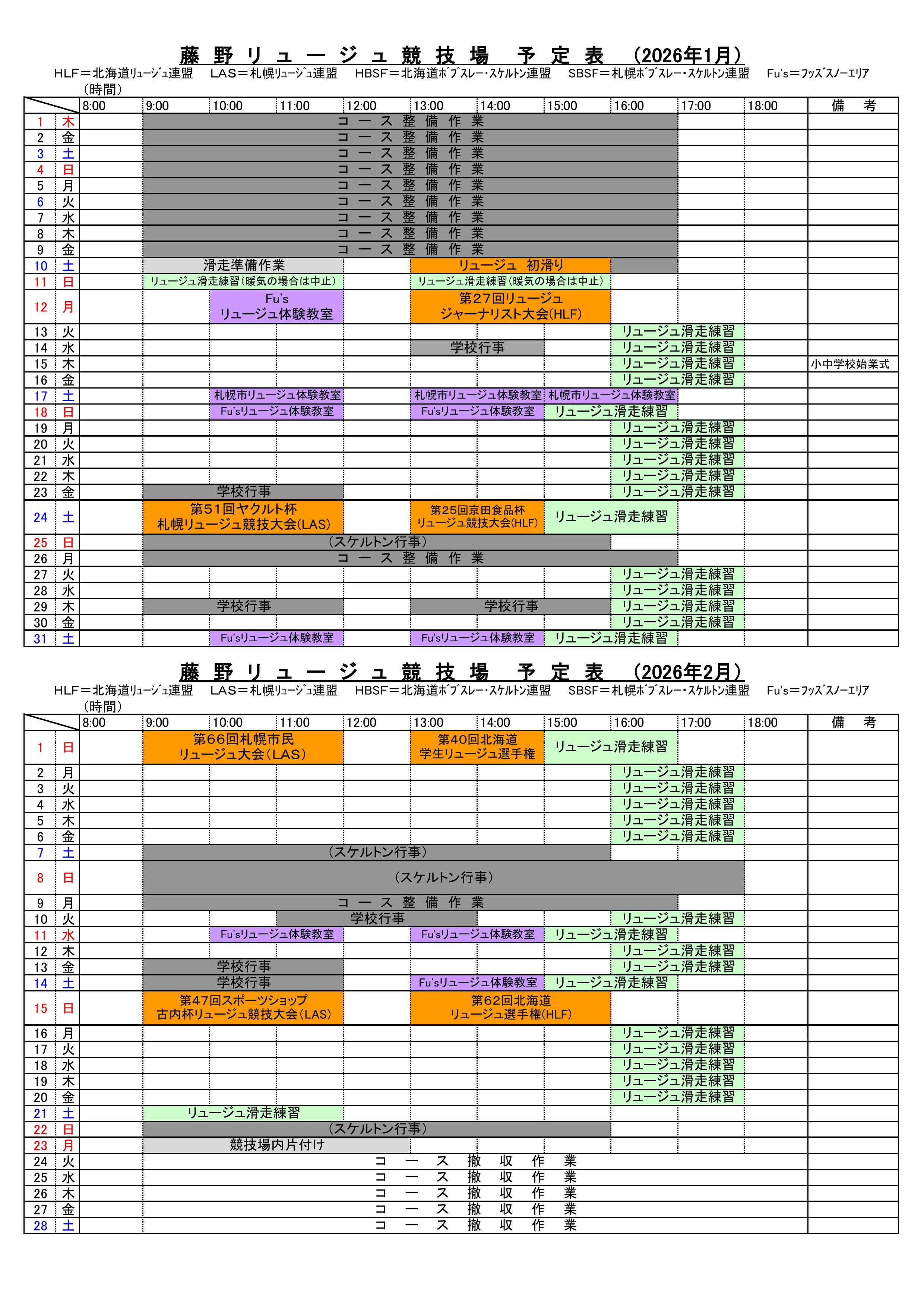気象状況(暖気・降雪等)によっては、行事日程の変更や中止となることもあります。